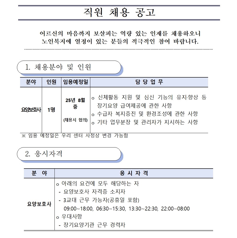 ±¤¸í½Ã¸³³ëÀοä¾ç¼¾ÅÍ Á÷¿ø(¿ä¾çº¸È£»ç) ä¿ë °ø°í