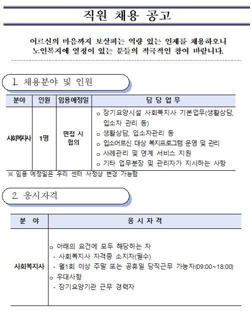 ±¤¸í½Ã¸³³ëÀοä¾ç¼¾ÅÍ Á÷¿ø(»çȸº¹Áö»ç) ä¿ë °ø°í